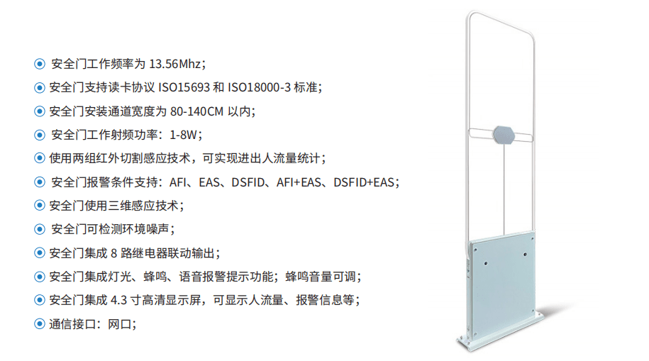 脑连接,可快速设置),在主动报警模式下支持 AFI、EAS、EAS+AFI、DSFID 和 DSFID+EAS 报警;防盗门可