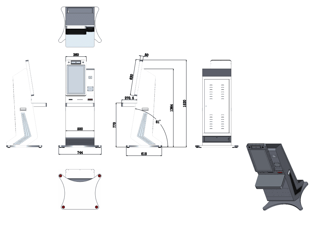 可非接触式的快速识别粘贴在流通物品上的RFID标签;可支持各种二维码的识别;可识别5元、10元、20元、50元、100元各种人民币并具备验钞功能;可办理各种类型的证件,包括接触式、非接触式RFID卡、IC卡、条码卡、磁条卡;可支持打印凭条;可支持密码键盘输入;具有自助、便捷、安全可靠等特点,用于各类证件自助办理,各模块支持选配、方便灵活。